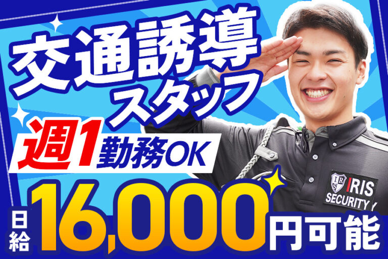 交通誘導/週1日~OK/日給保障あり/日給15,100円可能/短期OK