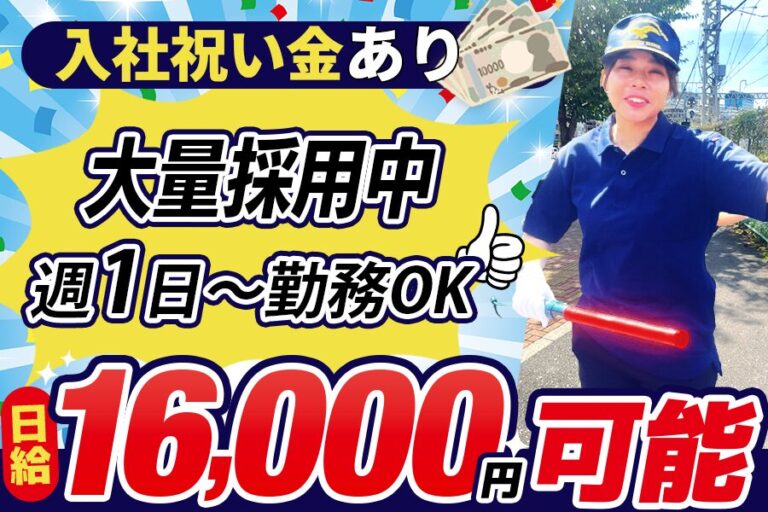 交通誘導・イベント警備/採用率98%!履歴書不要/週1~OK/日払い現金手渡しOK/入社祝い金15万円
